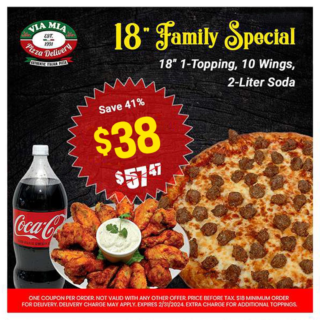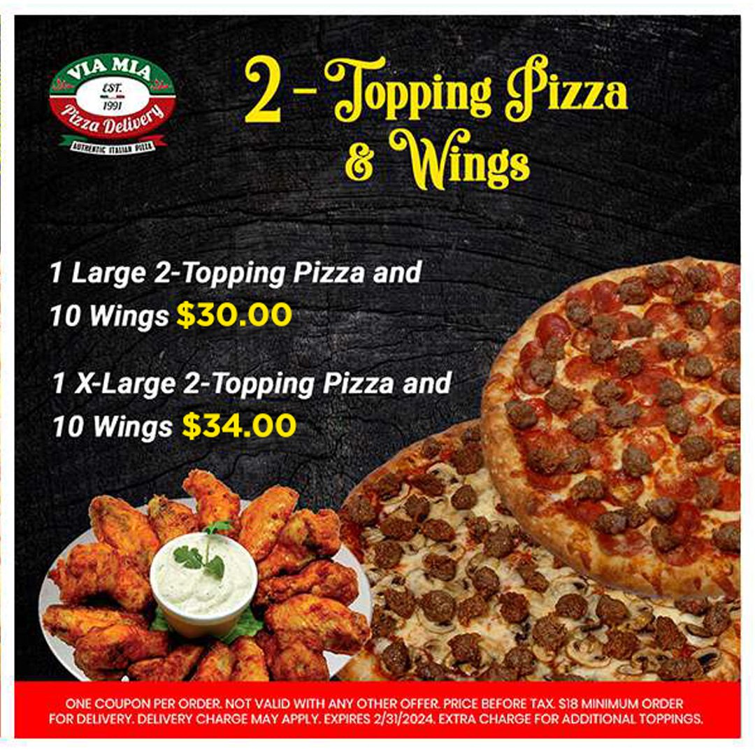 1 X-Large 2-Topping Pizza and 10 Wings $34