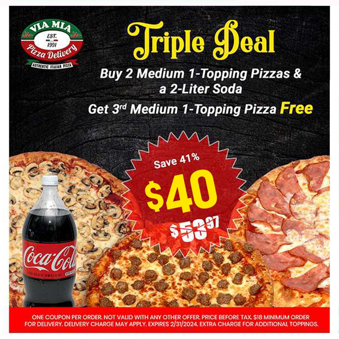 Buy 2 Medium 1-Topping Pizzas & a 2-Liter Soda