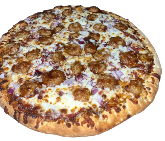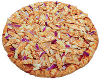 BBQ Sauce, mozzarella cheese, BBQ chicken, bacon, onion, cilantro