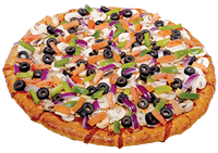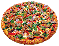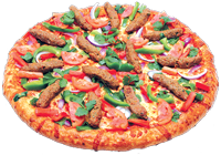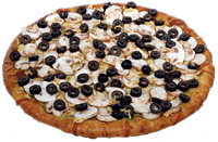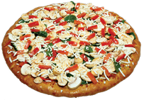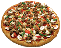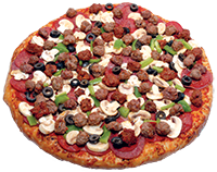 Tomato sauce, mozzarella cheese, pepperoni, bell pepper, sausage, onion, black olive, mushroom