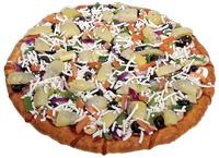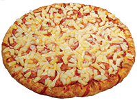 Tomato sauce, mozzarella cheese, ham, pineapple, extra cheese