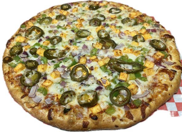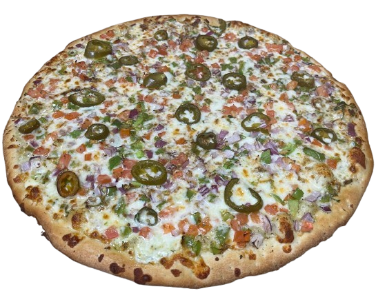 Spicy sauce, mozzarella cheese, steak, red onions, green peppers, Roma tomatoes, cilantro (jalapeno upon request)